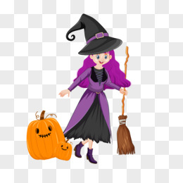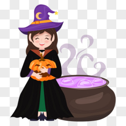 卡通万圣节可爱小女巫和巫术汤免抠素材