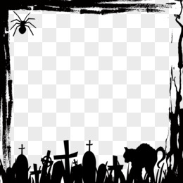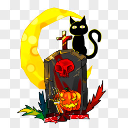 手绘卡通万圣节南瓜墓碑稻草人分割线素材