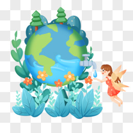 手绘卡通微景观小精灵守护地球水资源免抠素材