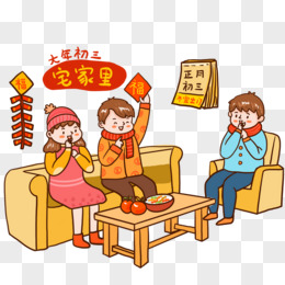 手绘卡通大年初三宅家里不出门拜年插画元素