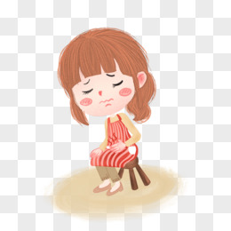 卡通手绘免抠女孩身体不舒服免抠 素材