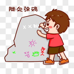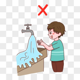 卡通手绘免抠男孩浪费水资源开着水龙头免抠元素
