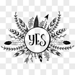 黑白手绘羽毛箭图腾纹样