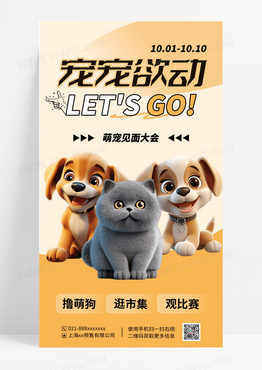 浅色简约宠物见面会可爱萌宠海报