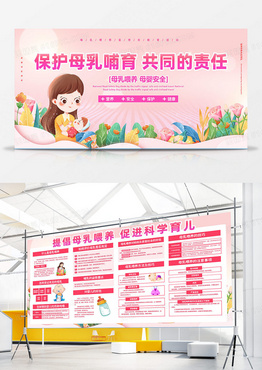 粉色大气2024世界母乳喂养周母乳喂养哺乳母婴健康医疗宣传栏双面展板