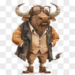 插画拟人水牛免抠素材