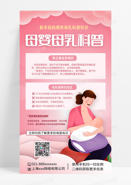 粉色卡通母婴孕育新手妈妈母乳喂养科普知识手机海报