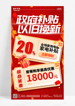 红色喜庆国家补贴以旧换新家电补贴手机宣传海报