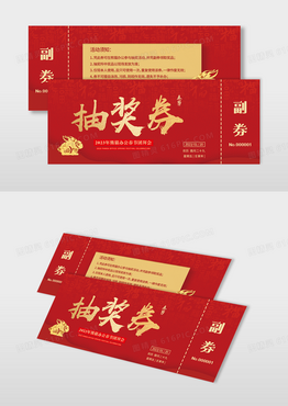 红色喜庆剪纸风2023兔年年会抽奖券海报