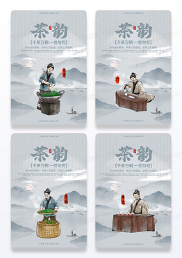 手绘水彩风采茶工序步骤套图免抠元素
