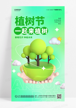 C4D绿色创意312植树节3d宣传海报设计