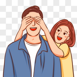手绘卡通女儿捂爸爸眼睛免抠素材