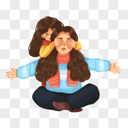 手绘卡通女孩蒙住妈妈眼睛免抠素材