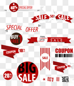 红色标签彩带折扣装饰