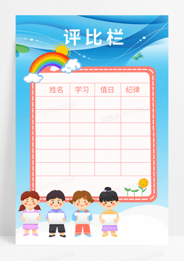蓝色简约大气小学初中班级评比栏评比表宣传海报汉堡菜单