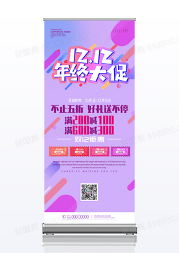 紫色炫彩电商双12来啦限时抢购双十二展架易拉宝