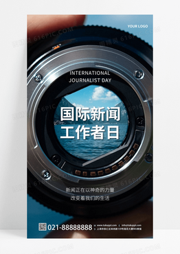 蓝色简约创意镜头国际新闻工作者日节日手机宣传海报
