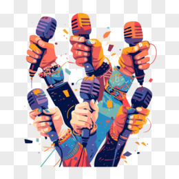 一组手绘卡通蓝色麦克风元套图合集元素三