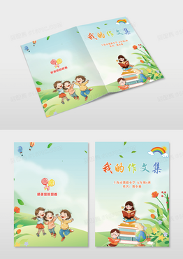 蓝天草地小学作文彩虹气球画册封面