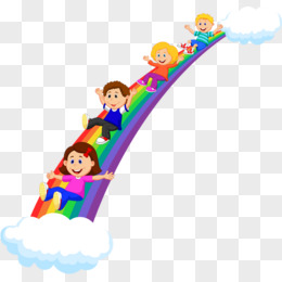 卡通坐在彩虹上的小男孩拿着彩虹风筝免抠元素