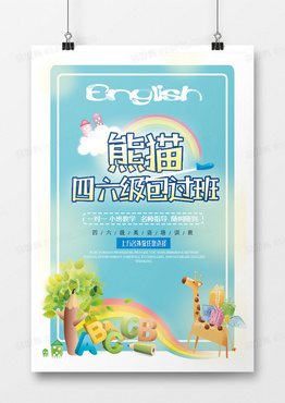 浅蓝色卡通简约风熊猫四六级包过班海报