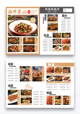 咖色简约大气餐厅招牌菜餐厅餐饮美食类横版菜单