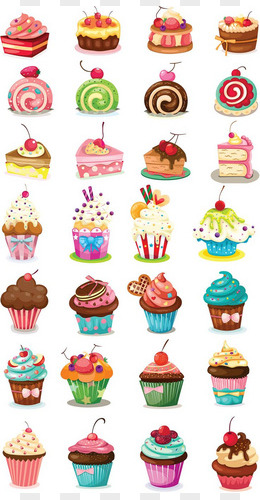 一组手绘彩色蛋糕组合插画套图