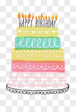 手绘卡通彩色生日蛋糕免抠素材