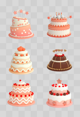 一组C4D彩色生日蛋糕元素