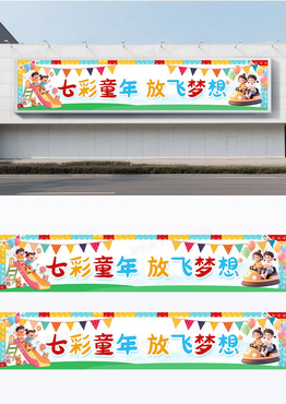 简约彩色卡通创意61六一儿童节快乐童年梦想展板横幅围挡