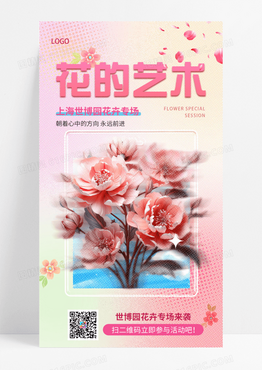 活动促销彩色花朵花的艺术上海世博手机宣传海报
