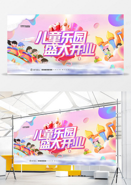 彩色卡通儿童乐园儿童乐园盛大开业儿童乐园展板