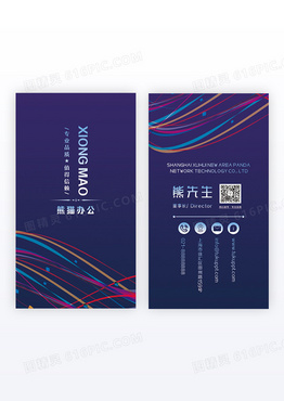 科技抽象线纹彩色传媒通讯公司竖版名片设计