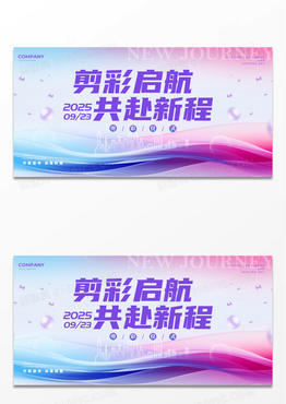 渐变色炫彩线条风格剪彩仪式剪彩仪式宣传展板