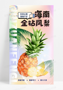 餐饮美食彩色炫彩简约金钻凤梨水果手机宣传海报