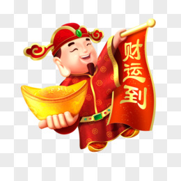 手绘卡通Q版五路财神环绕金蛇插画元素