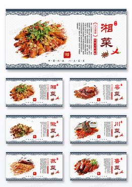 一组手绘八大菜系川菜手绘插画美食套图元素