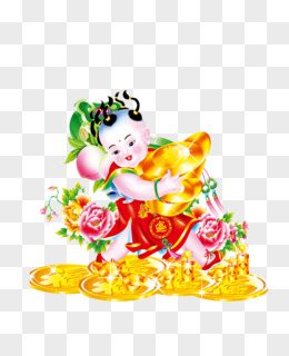 手绘招财娃娃元宝人物素材