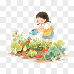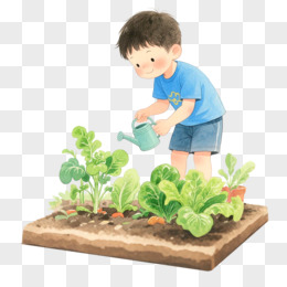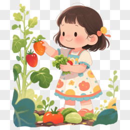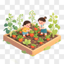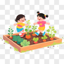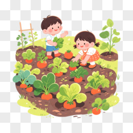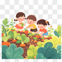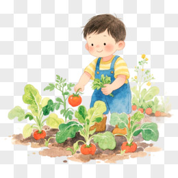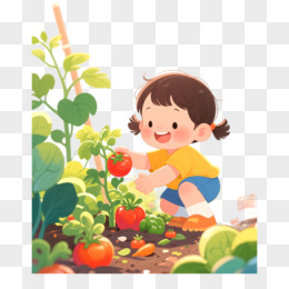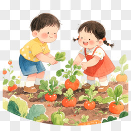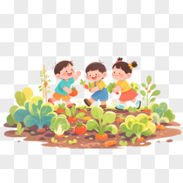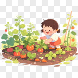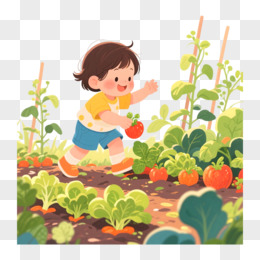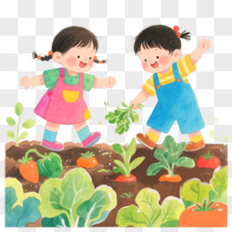 下乡体验生活的孩子在菜园子的画面免抠元素