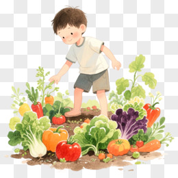 卡通扁平风男孩菜园地收获南瓜免抠元素
