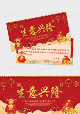红色时尚喜庆开业贺卡模板招财进宝日进斗金财运亨通开业贺卡