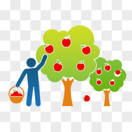 手绘卡通大人陪着小朋友摘苹果插画免抠元素