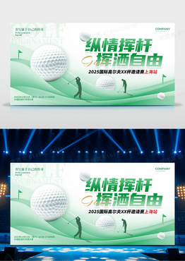 绿色材质风格纵情挥杆高尔夫比赛宣传展板