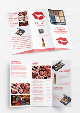 粉色少女感简约时尚彩妆产品宣传三折页设计