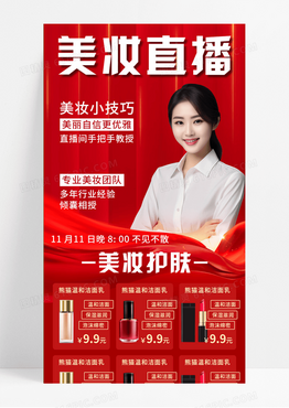 红色彩带简约直播预告人物促销电商设计