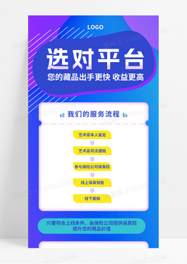 蓝紫色渐变几何背景艺术藏品平台服务流程手机长图模板流程手机长图