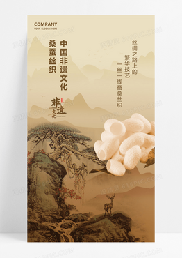 棕色简约非遗文化桑蚕丝织蚕茧金色大气中式海报