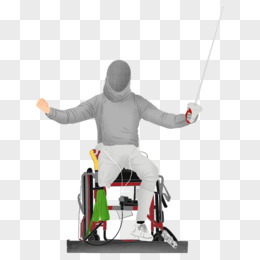 手绘插画风轮椅击剑元素