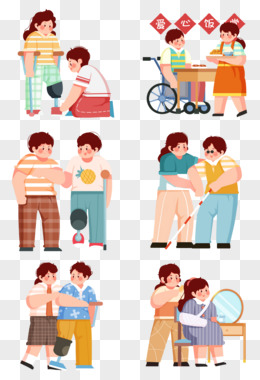 一组创意插画助残帮助残疾人合集元素
