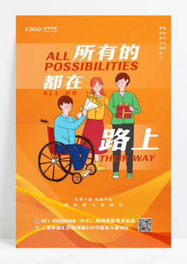 橙色残疾人运动员全民健身日海报
